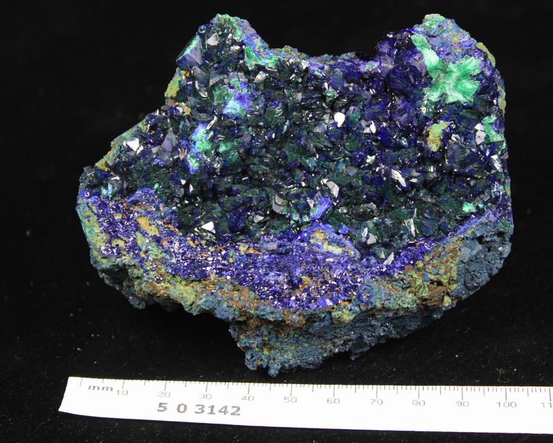 click on image to enlarge Azurite & Malachite after Azurite CM593141 USD585.00 Size: 12*6*4cm Weight: 375g Sepon Mine, Vilabouly Dist., Savannakhet Prov., Laos